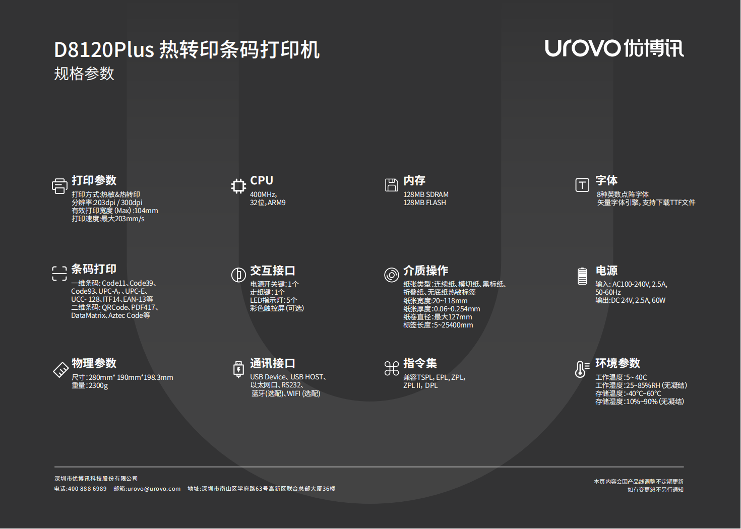 桌面式打印機D8100系列 優博訊標簽打印機