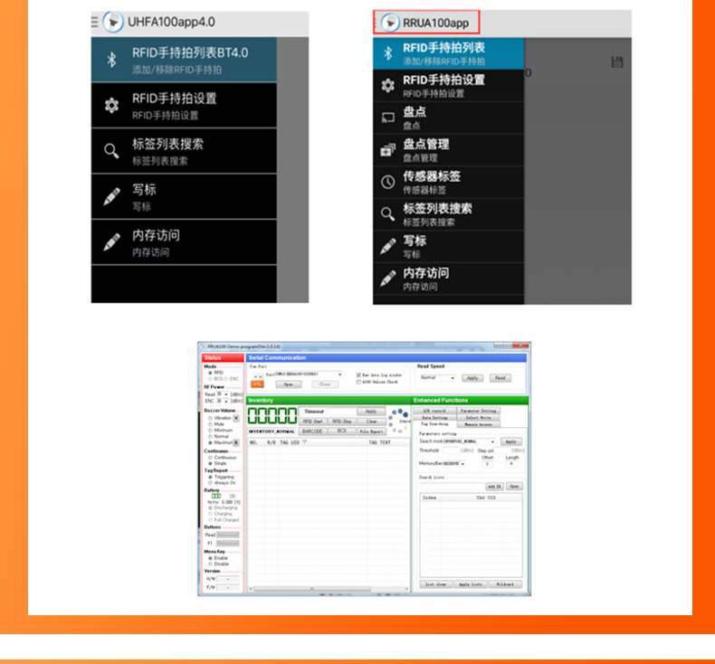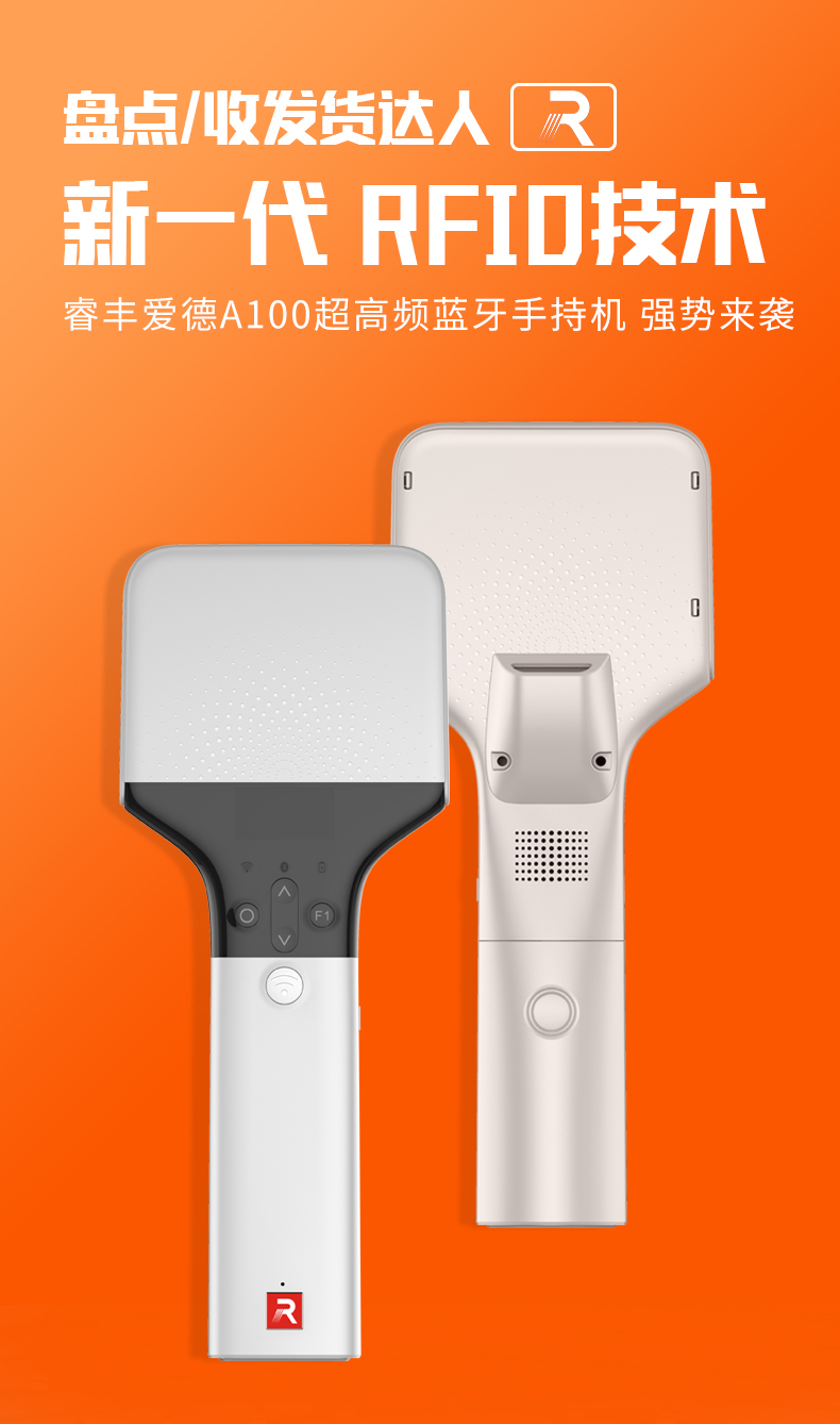 超高頻藍牙盤點儀A100是一款長距離RFID讀寫器,穩定讀寫距離在15米左右,群讀每秒可以讀300個電子標簽。高性能的讀寫能力使其可以應用到任何惡劣的場景,如大型倉庫,物流站點配送,門店盤點以及洗滌行業。